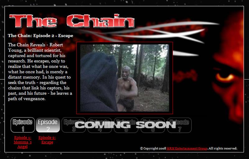 Site design for MRM Entertainment Group's web series, "The Chain". It also included creating a YouTube channel for The Chain.